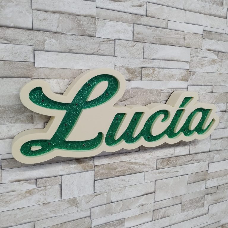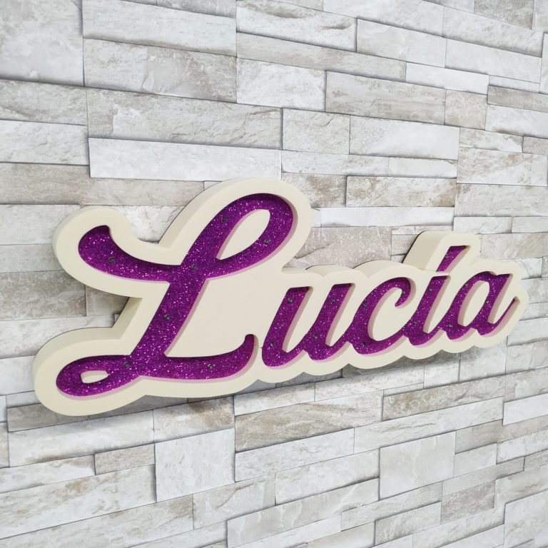 Nombre con luces y purpurina.