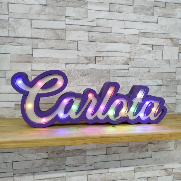 Nombre con luces led de color ROSA O AZUL