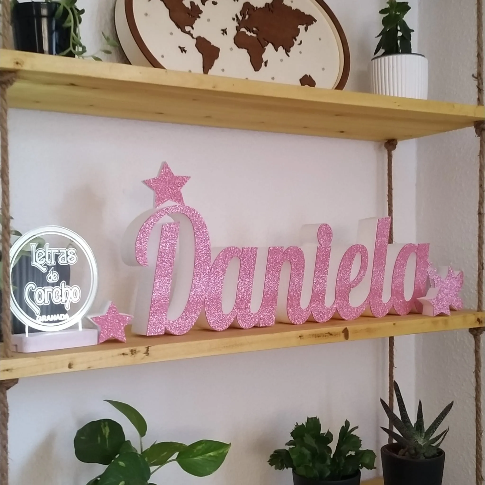 Nombre con purpurina.