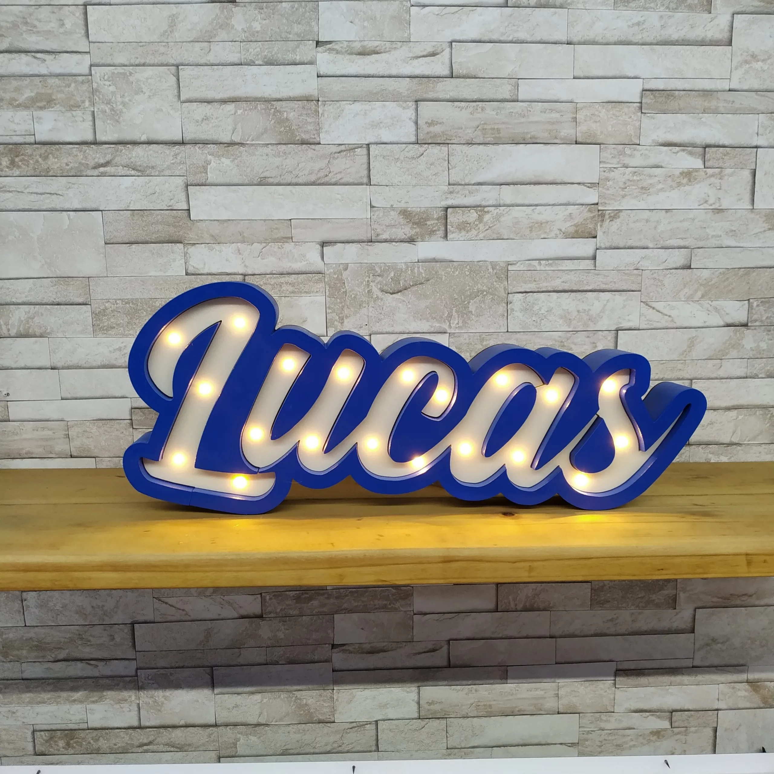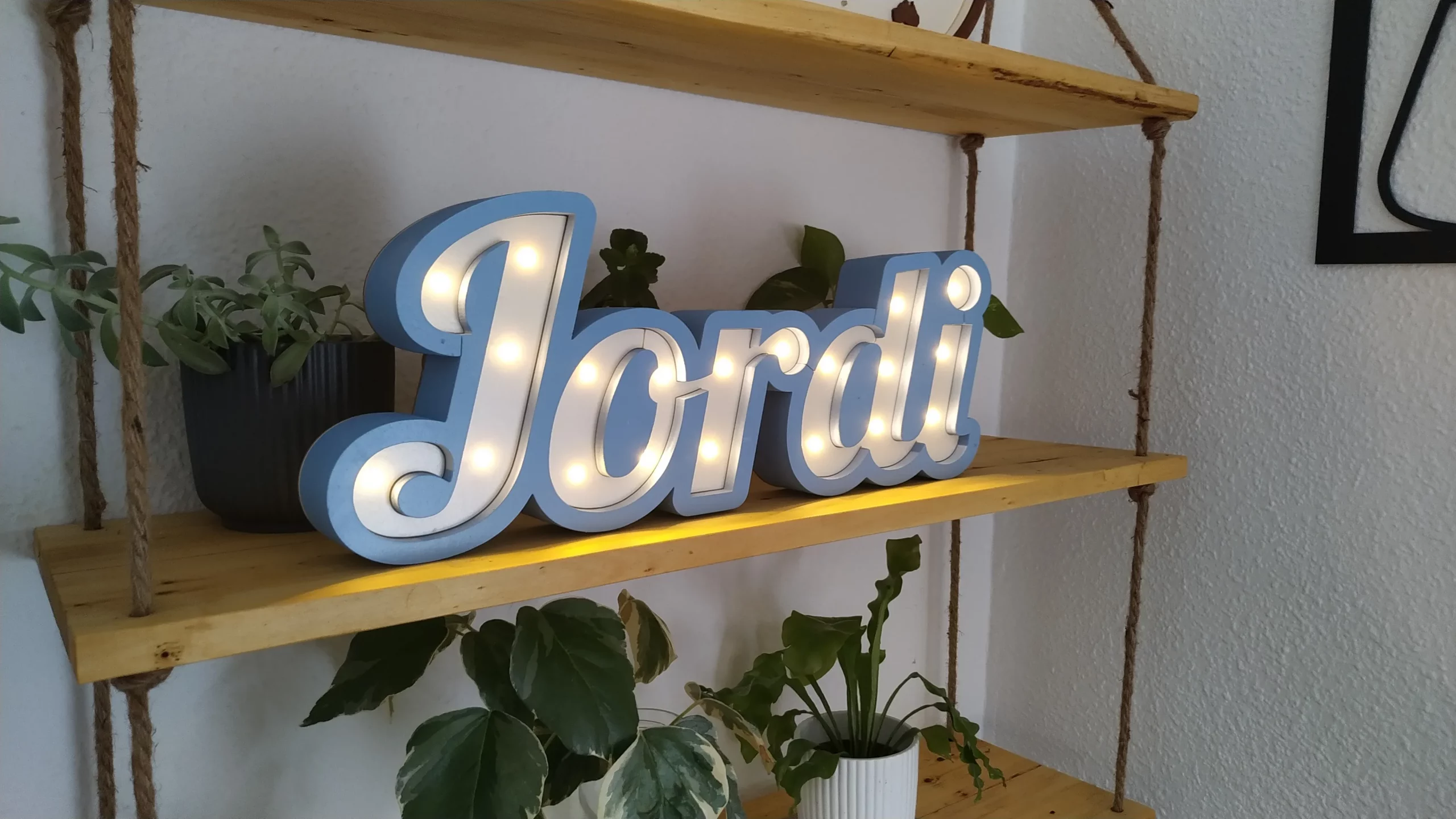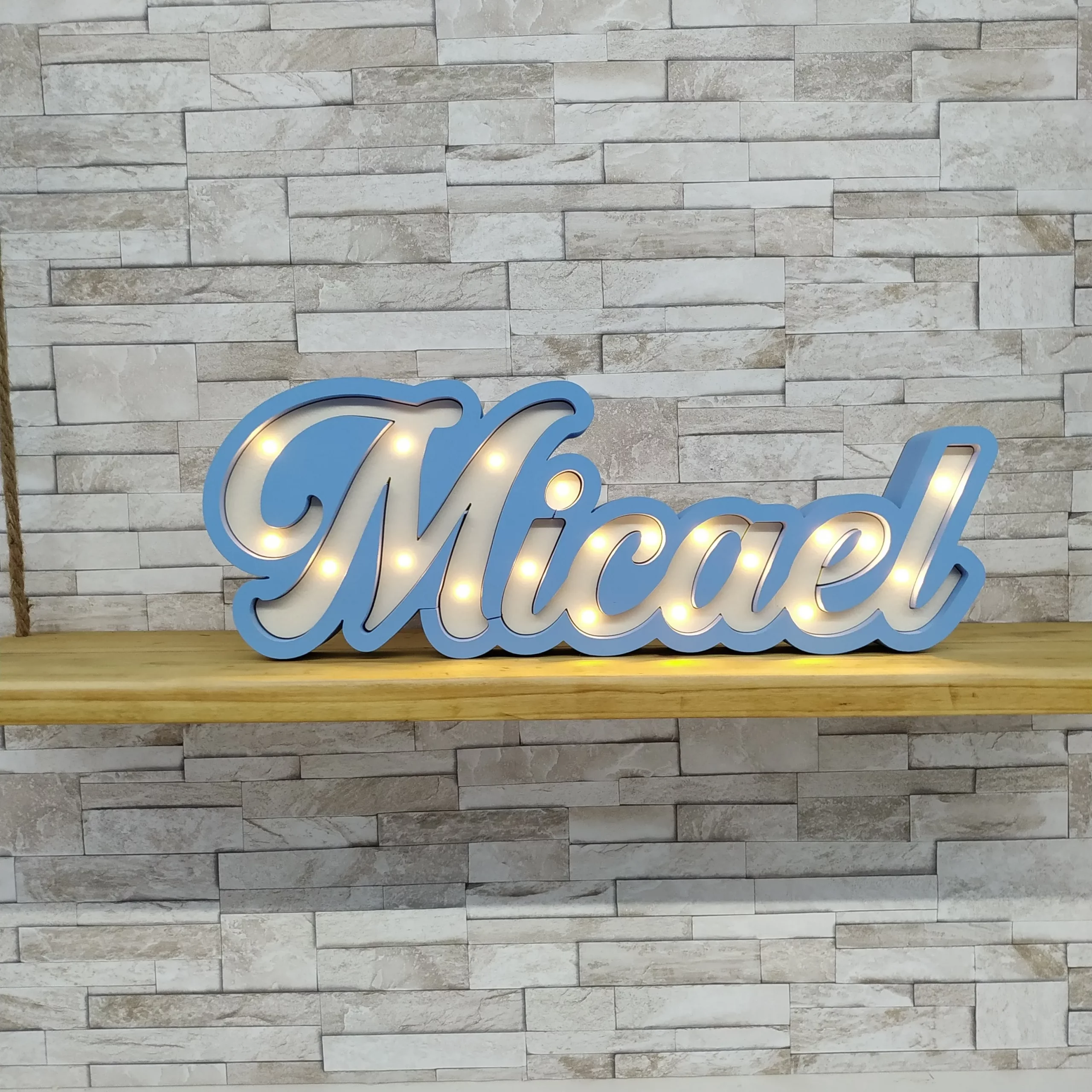 Estamos muy contentos con el Nombre en Luces. Incluso venía con pilas y el pedido se entregó rápidamente. Muy recomendable.
