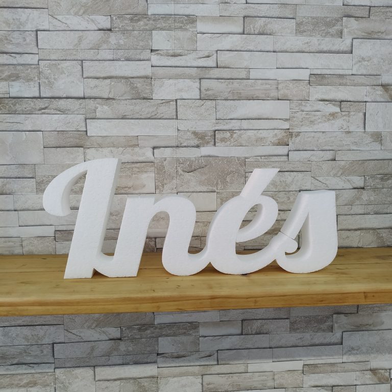 Nombres en corcho blanco de alta densidad.